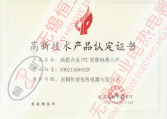 本公司的產(chǎn)品已全面通過電氣3C認(rèn)證、全國防爆電氣產(chǎn)品生產(chǎn)許可證認(rèn)證,且取得了國家防爆合格證、其中35項產(chǎn)品獲得國家專利證書、中國船用產(chǎn)品鑒定、英國勞式船級社認(rèn)證、江蘇省科技成果鑒定。產(chǎn)品榮獲:12項江蘇省高新技術(shù)產(chǎn)品,8項產(chǎn)品列入國家火炬計劃。2002年合金PTC管狀電熱元件獲國家創(chuàng)新基金65萬人民幣。2005年硅橡膠電熱帶獲得國家創(chuàng)新基金75萬元人民幣。所生產(chǎn)的產(chǎn)品被無錫市評為“
