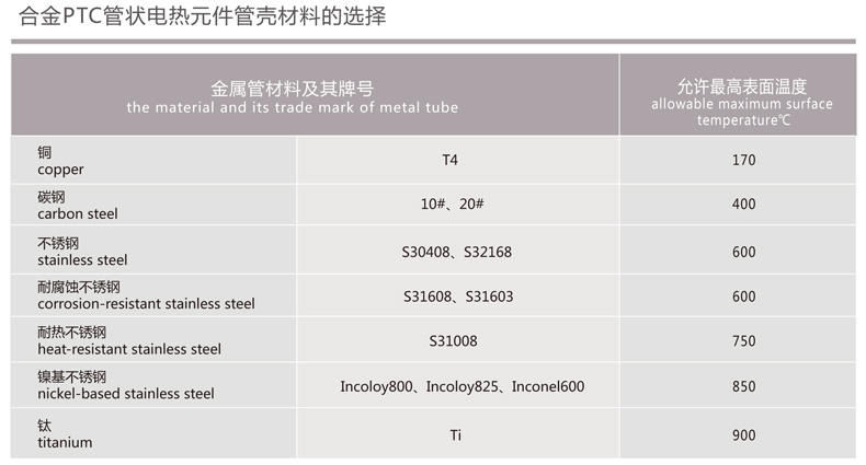 ◆ 由金屬管殼、引出棒(不發(fā)熱區(qū))、氧化鎂粉、PTC合金電熱絲等組成。